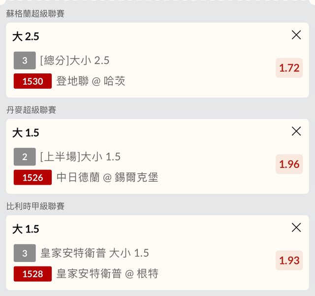 中日德蘭/錫爾克堡 上半1.5大1.96