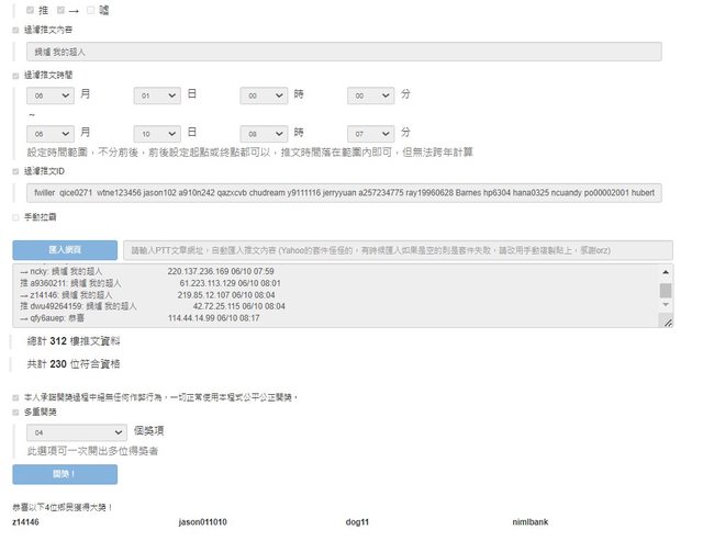 抽四位 (已過濾律師以外大大中獎過者)(六月)
