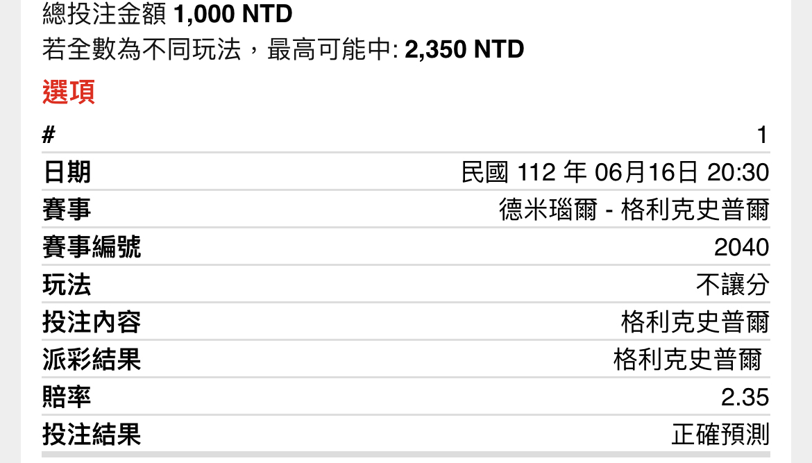 → Peteribb: 高賠全倒,沒有一場例外,例外全沒買到 39.9.100.158 06/16 22:12