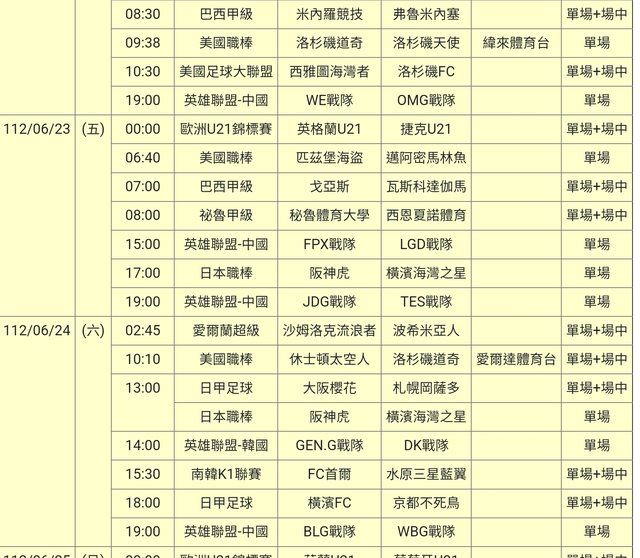 標題[情報] 112-06-22單場場中