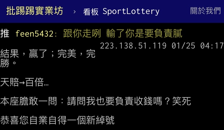 → tonyaska: 亂嗆立馬被開出100倍,永成運彩板經典210.243.207.125 06/23 03:45