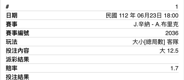 → asd1114: 我買姐夫單大1.75 61.231.2.93 06/23 21:30