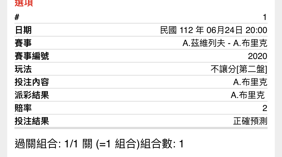 → luckywind: A.茲維列夫(-2.5) 全場大小22.5 125.230.176.50 06/24 19:56