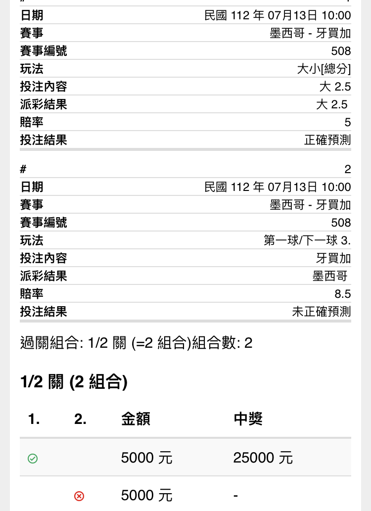 → abuken: 過2張2.5大 輸一張牙買加下一球 112.78.68.103 07/13 12:32