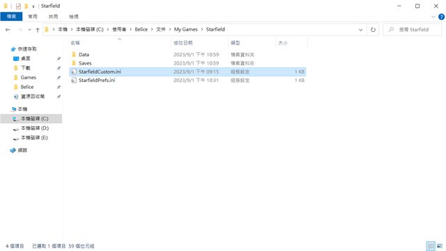 新增一個檔案:StarfieldCustom.ini,並輸入以下內容,如圖所示。