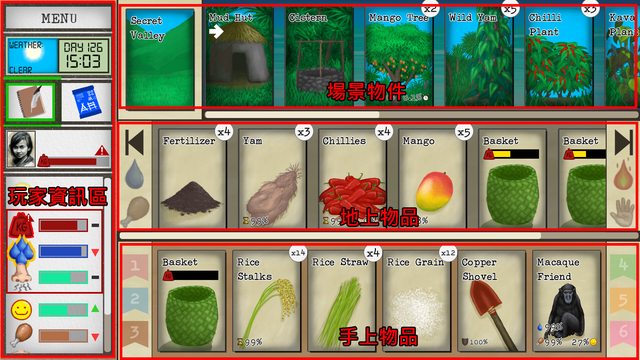 最後可惜,渡過旱季後,大概也生活無虞,沒啥挑戰了,也沒動力去探索整個島嶼,