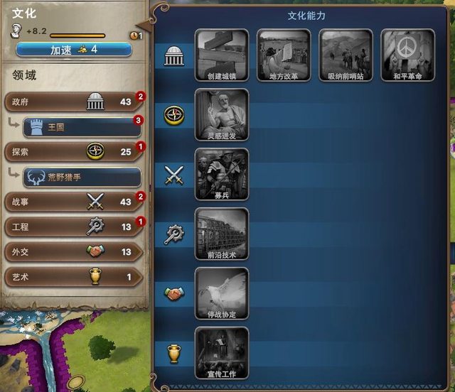 可以解鎖加成外,還有例如直接招軍隊、或是回血回士氣等(城市就可以不用花時間去蓋