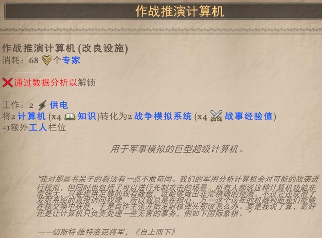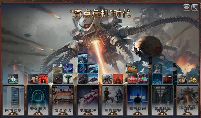 在上個時代做死蓋超級計算機後,累積滿後即可進入 將會消滅所有第八時代以前國家 並同時在所有沒有被影響力框住的地方產生機械中心以及機械士兵