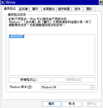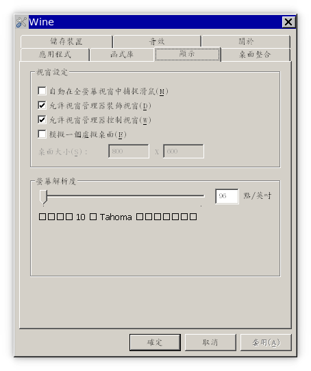 如果 winecfg 「顯示」那頁的中文會有亂碼, 需要中文字形, cp mingliu.ttc