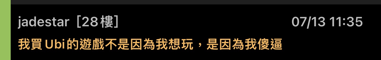 推 jadestar: 我買Ubi的遊戲不是因為我想玩,是因為我傻逼 07/13 11:35