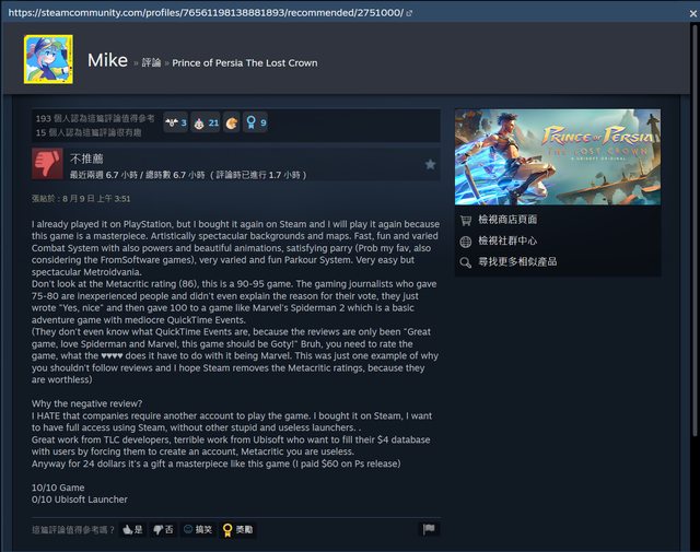 推 Raquzza0526: 現在就知道Steam的評價系統有時候多麼不可靠 08/10 11:09