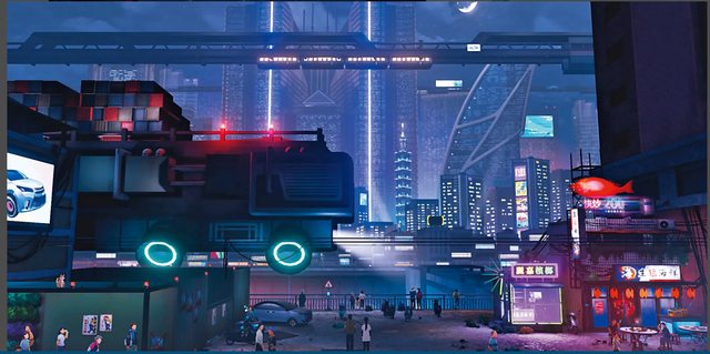 遊戲中虛構的「灣北市」,呈現出霓虹繽紛、科技高樓與老舊社區並存的強烈視覺,