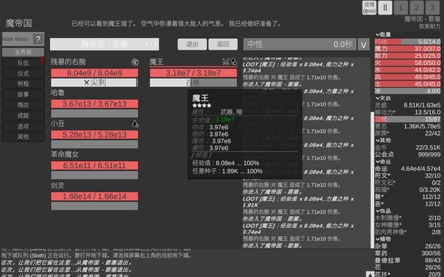 (魔王特性是魔王死 招喚的怪物一起全死+都有經驗/掉落/研究獎勵)
