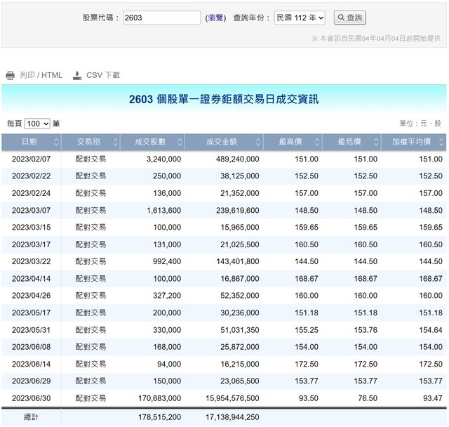 2603 長榮 配對交易 93.5 170,431,000 15,935,298,500
