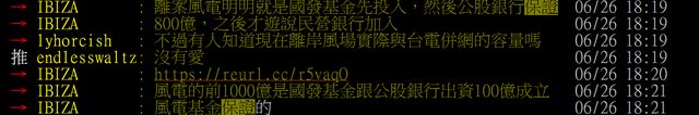 → IBIZA : 台電網頁明明白白寫著海能風電目前處於執照未取得階 06/30 18:49
