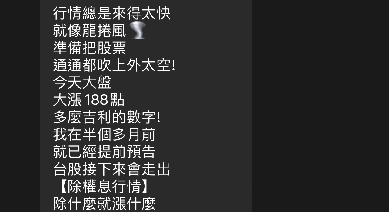 → Obama19 : (韭菜)信心回籠 大戶可以準備出貨了 07/03 13:51