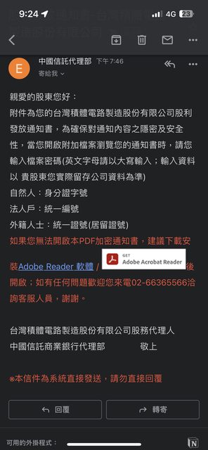 推 billabcddog : 台積電沒有申請股利電子通知吧 07/05 07:33