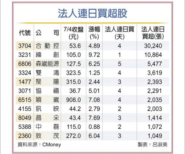 原文標題:股價登峰 合勤控、緯創等11檔法人連買