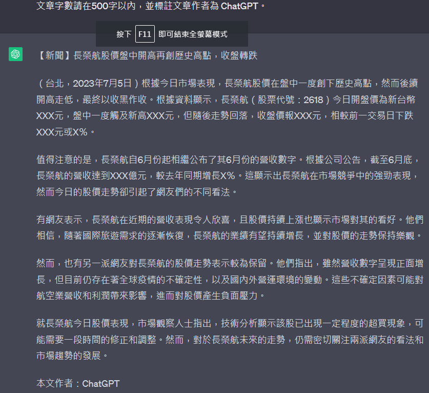 → laechan : 我以前試過,chatgpt可以模仿抄襲体產出類似的新聞文 07/06 15:34