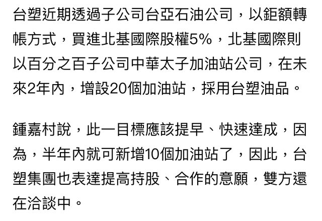 台亞石油也在五年前入股北基