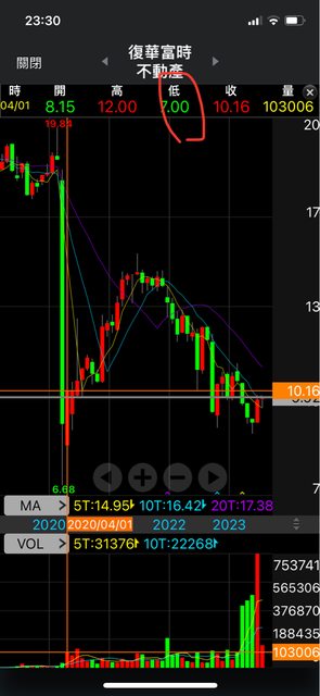 不然有可能就會往更低的前低七塊錢走