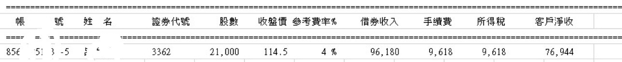→ j6569642 : 券差-被嘎 日息,股票出借-有人放空 年息 07/14 14:53