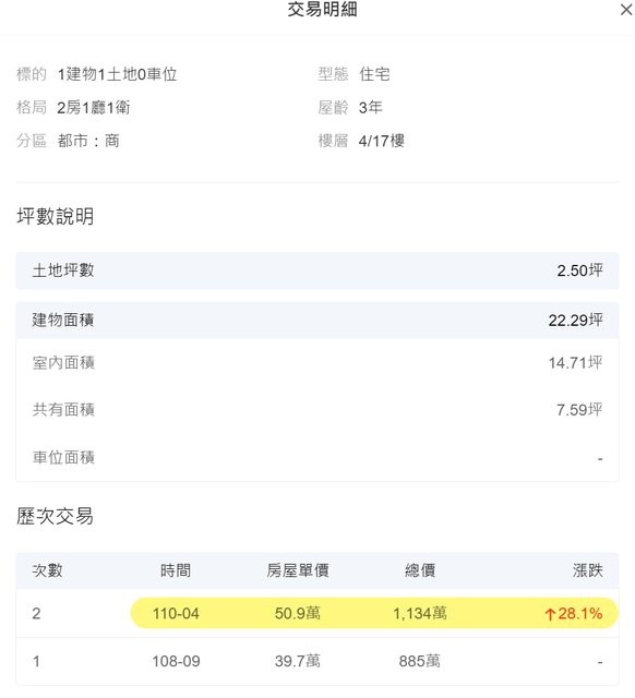 → guowei616 : 第一手開賣時是11萬 好險當時沒信他們 現在實價登 07/18 12:45