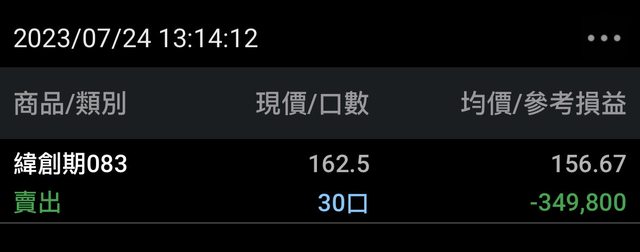 → jimmyonnet : 面虧損30萬,你權益數大概只剩180萬。30口的期貨, 07/24 16:20