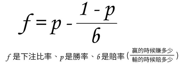 推 tomdavis : 凱利公式 -> 看好幾個老蘇 誰勝率高就高比例跟單(X 07/24 23:52
