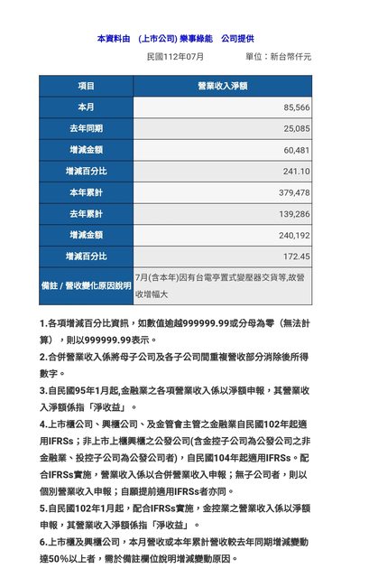 標題[標的] 1529樂事綠能7月營收YOY241.1%