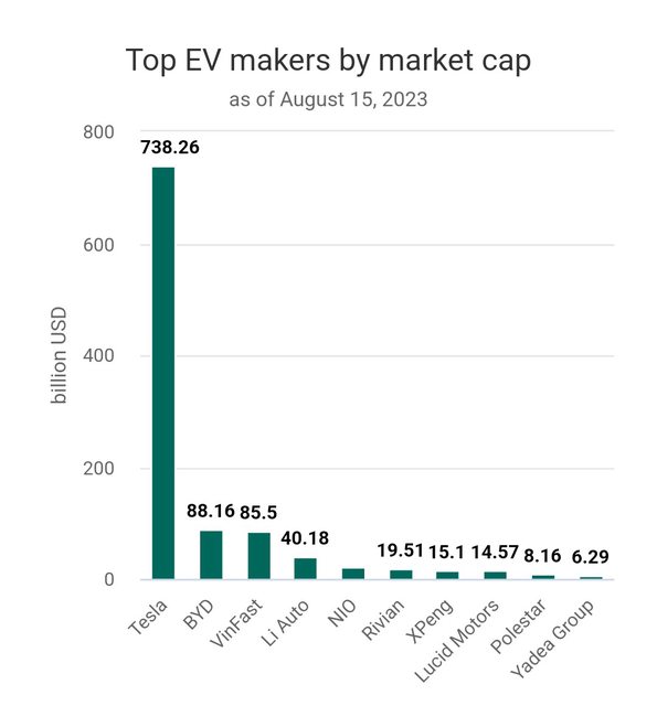 ------------------------------------------------------------------------- 1.請符合以下文章格式,違者4-1刪除 2.本分類提供以下幾種文章搬運 a. 每日交易數據相關:每日法人買買超、融資券、交易量... b. 公司重要訊息相關:營收、股利、股東會懶人包、法說會內容整理... c. 現有資訊整理相關:殖利率排名、金融股獲利分布、 3.請詳閱板規參考相關規定 ----------------------------按ctrl+y可刪除以上內容。--------------------- 1. 標題:Vinfast成為全球市值第三高電動車商 2. 來源:越南快訊 (公司名、網站名) 3. 網址: https://bit.ly/3sdL4VM (請善用縮網址工具) 4. 內文: 越南電動車商Vinfast 禮拜二在美國納斯達克上市 收盤37美金 市值約850億美金 僅次特斯拉及比亞迪 成為全球市值第三高的電動車商 https://i.imgur.com/OCKe3KN.jpg