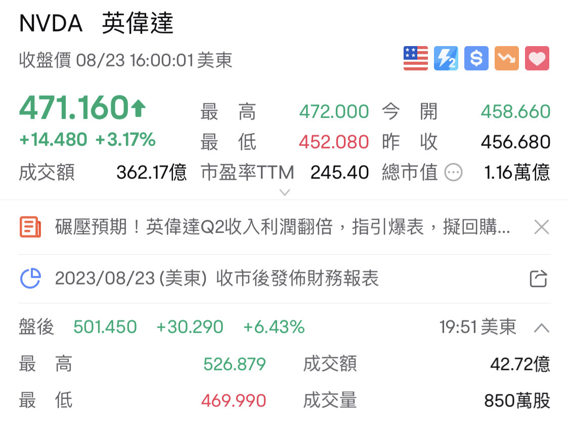 推 Tohkachan : NV這幾天漲不少了盤後還跳漲6% 08/24 06:59