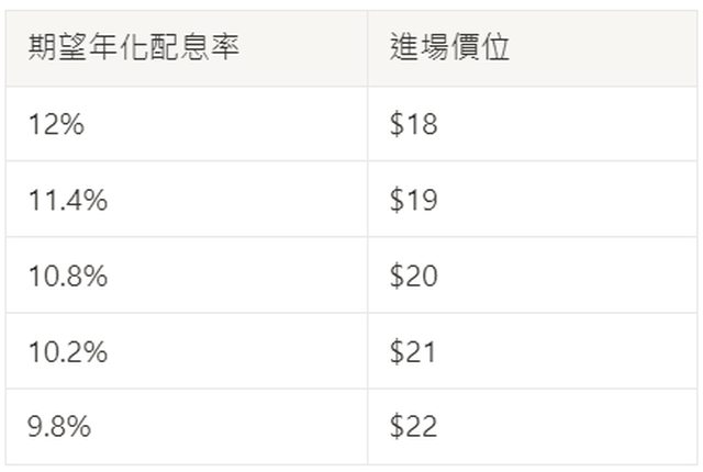 : 依照一季配0.54 一年配2.16,用期望的配息率去算進場價位