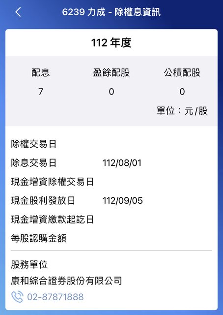 → Kobe5210 : 打給康和證券,確認股利通知書09/06 08:45