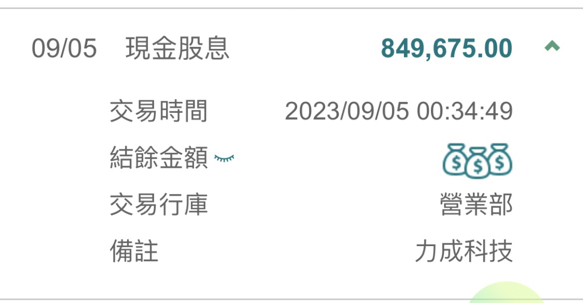 推 koalais2 : 台北9月5日收到股利09/06 11:53