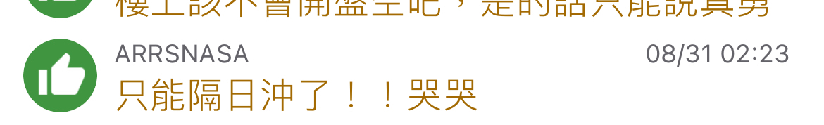 → mirror487 : 明天一根向上向下不知道 我只知道前天被洗出去的哭 09/07 18:00