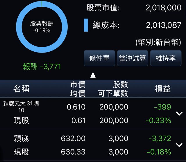 掉,並補回原本的3張穎崴,再補了一點權證回來