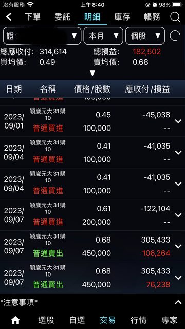 : 8月一度帳上大賠30萬+已實現的-10萬