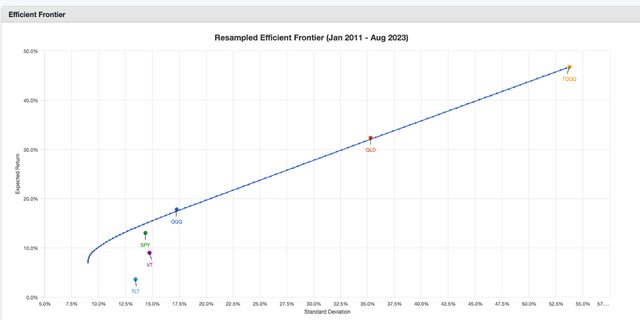 實際測試2011~2023一籃子ETF上市之後的效率前沿