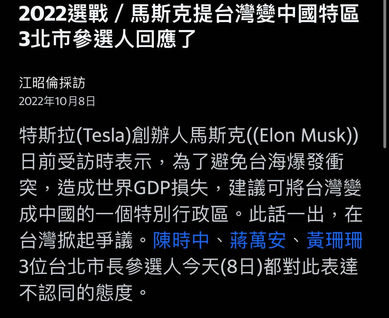 噓 LimYoHwan : 憑什麼馬斯克要舔台 有什麼好處? 09/19 11:03