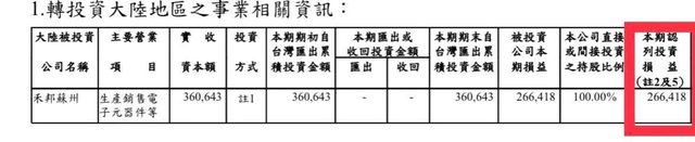 中國廠認列了好大一筆獲利