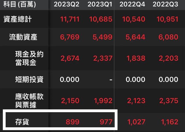 那毛利上升也歸功於庫存開始下降