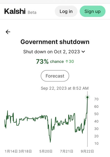 : 市場預期美帝政府10/2關門機率突破七成
