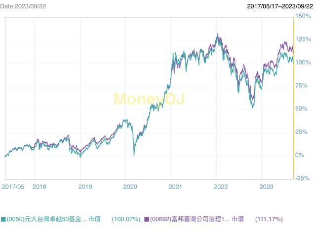 00692(2017.05.17上市),上市起績效對比0050:
