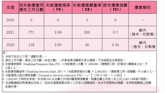 特別是兩大員工公共安全指標,依照永續報告書的揭露,明顯已出現警訊。