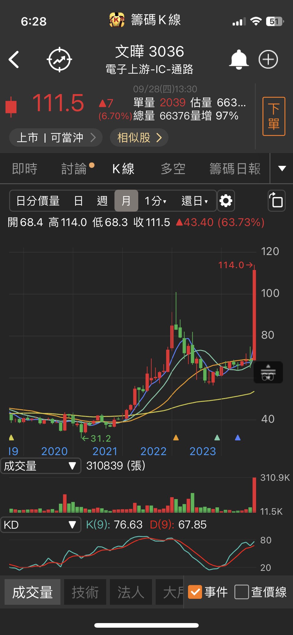 → j0588 : 短線有題材是可以搶,但追高要嚴格執行停損吧,畢竟 09/29 07:02