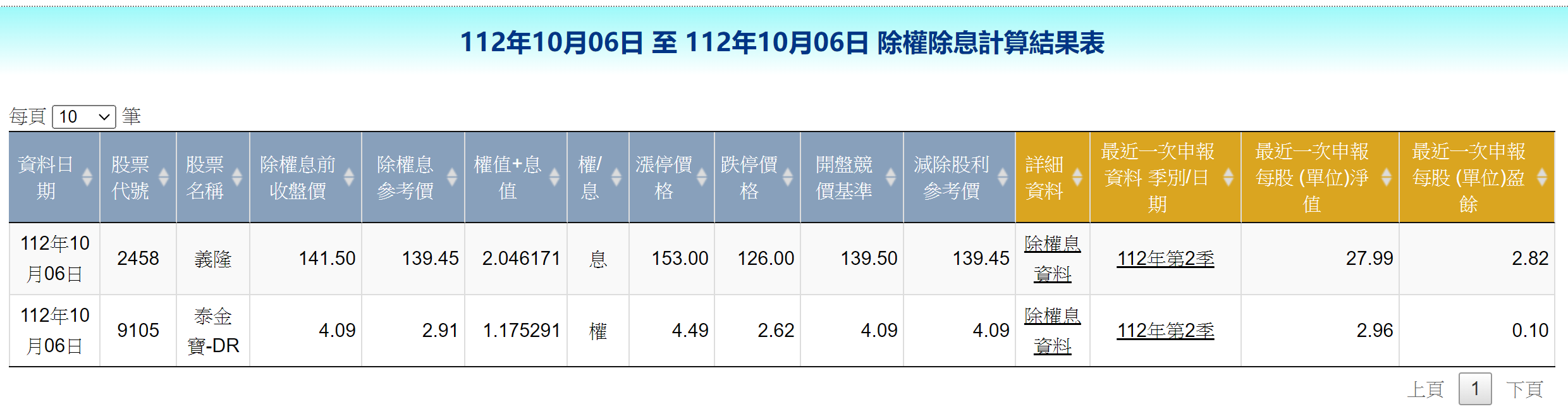 → jacky06046 : 交易所除權除息結果表 10/06 10:23