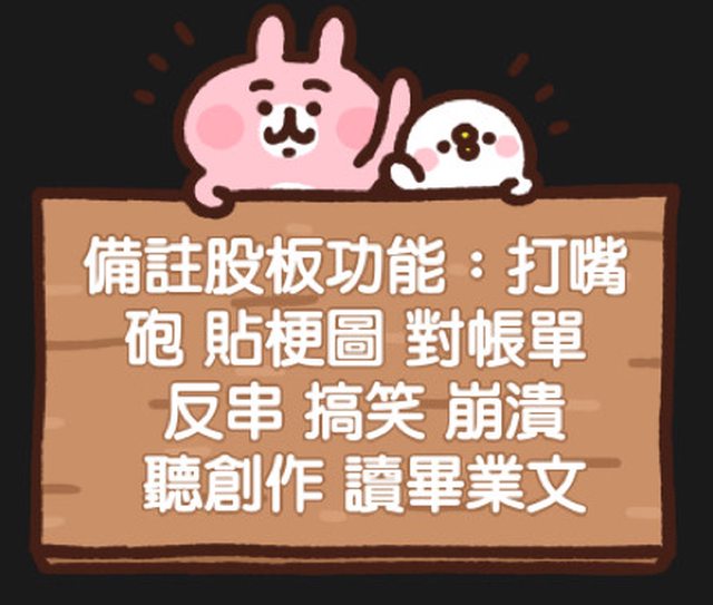 股板功能: 打嘴砲 貼梗圖 PO對帳單 裝反串 說笑話 看人崩潰 聽創作曲 讀畢業文