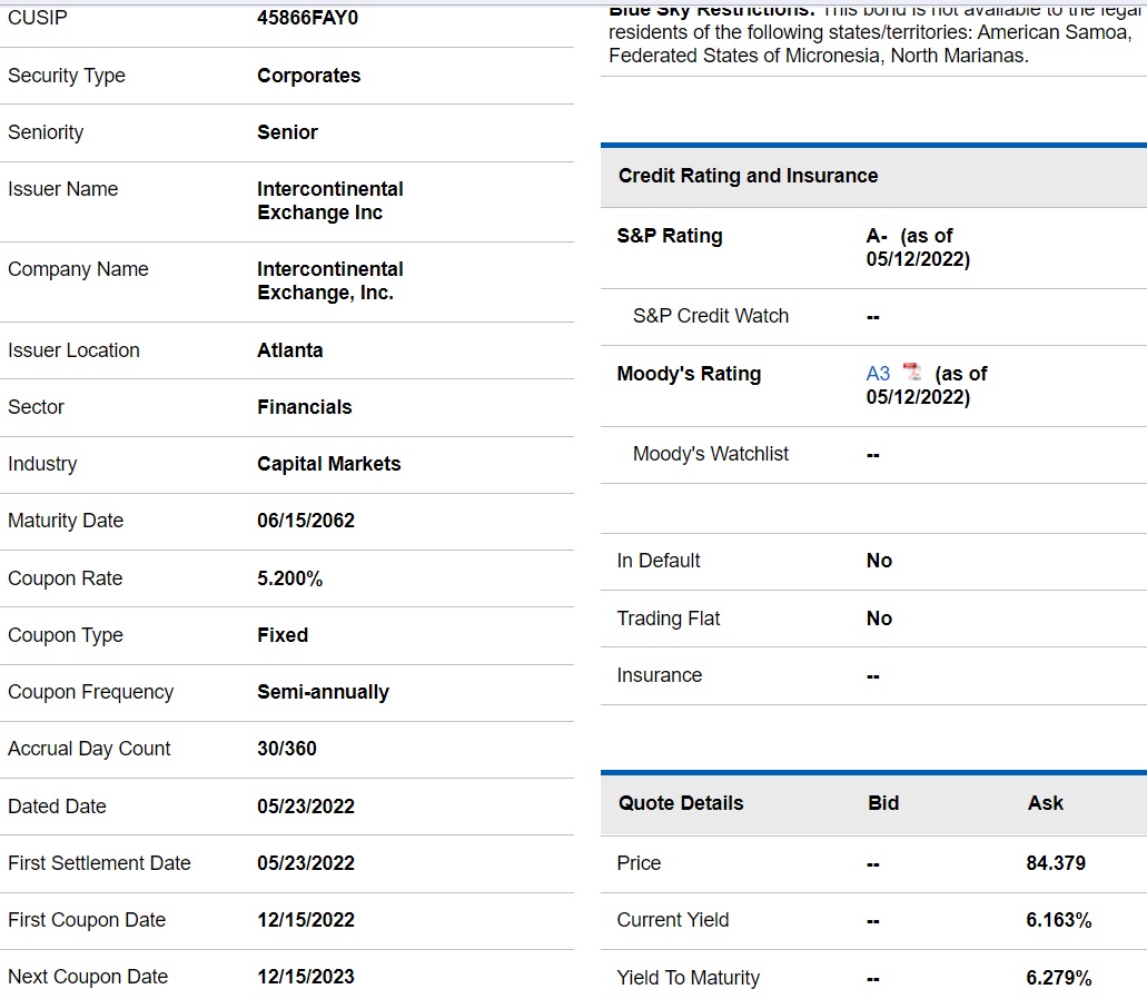 推 icelaw : 我今天等一下預計會買ICE 洲際交易所的公司債 40年 10/24 19:46