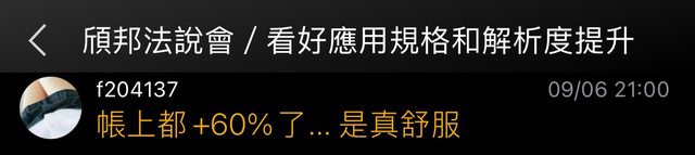 → cateyes : 1215、1216 也在6X進了 我是一下就賣飛 他不開APP11/05 10:12